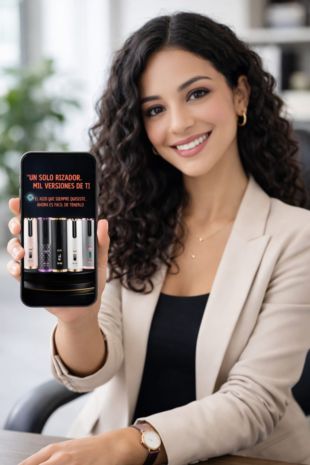 Es una rizadora automática, compacta y recargable, pensada para personas que valoran su imagen, pero también su comodidad.